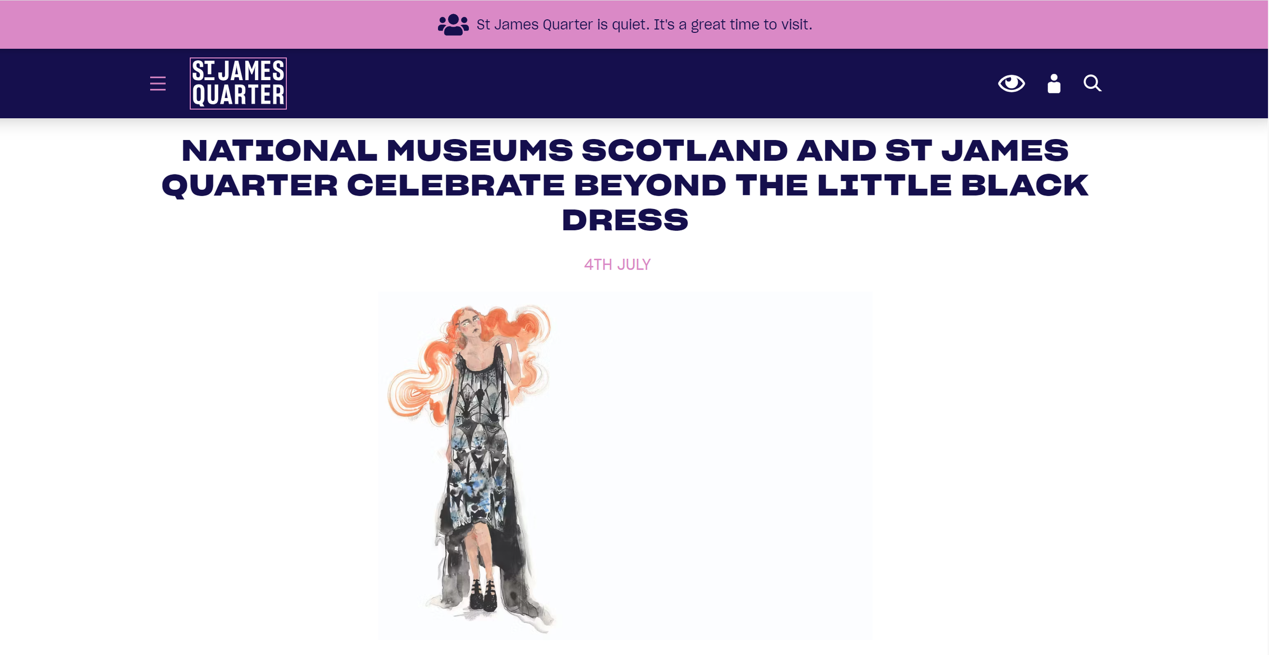 Commissioned by St James Quarter, Shopping and lifestyle destination Edinburgh to create a illustrative work to be used for promotion of event to celebrate the launch of 'Beyond the Little Black Dress' National Museums of Scotlaand Exhibition. Promotional artwork featured across St James Quarter and National Museums of Scotalnd websites, social channels and newsletters.